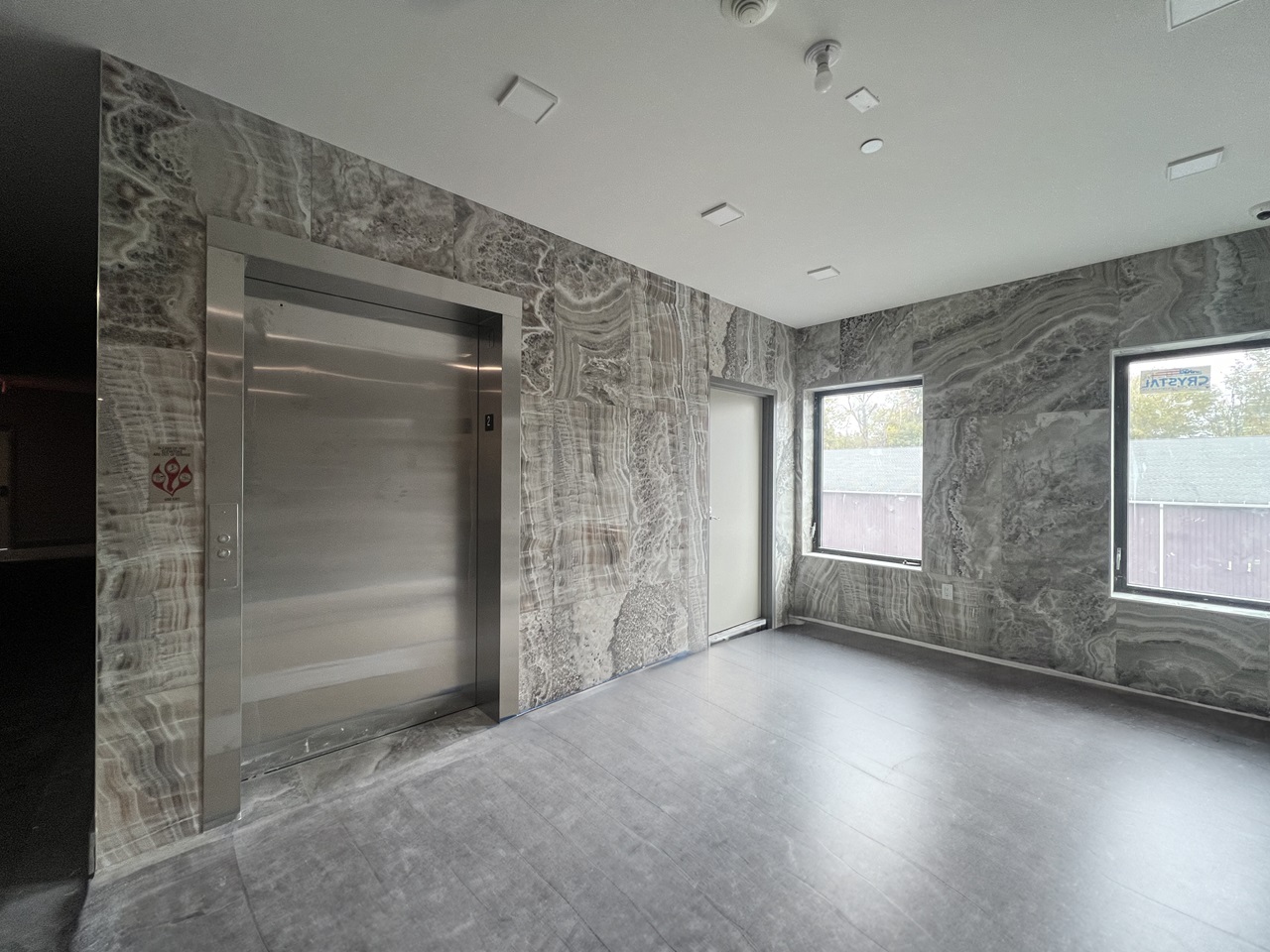 atrium/lobby space, an elevator core, new offices, bathrooms,