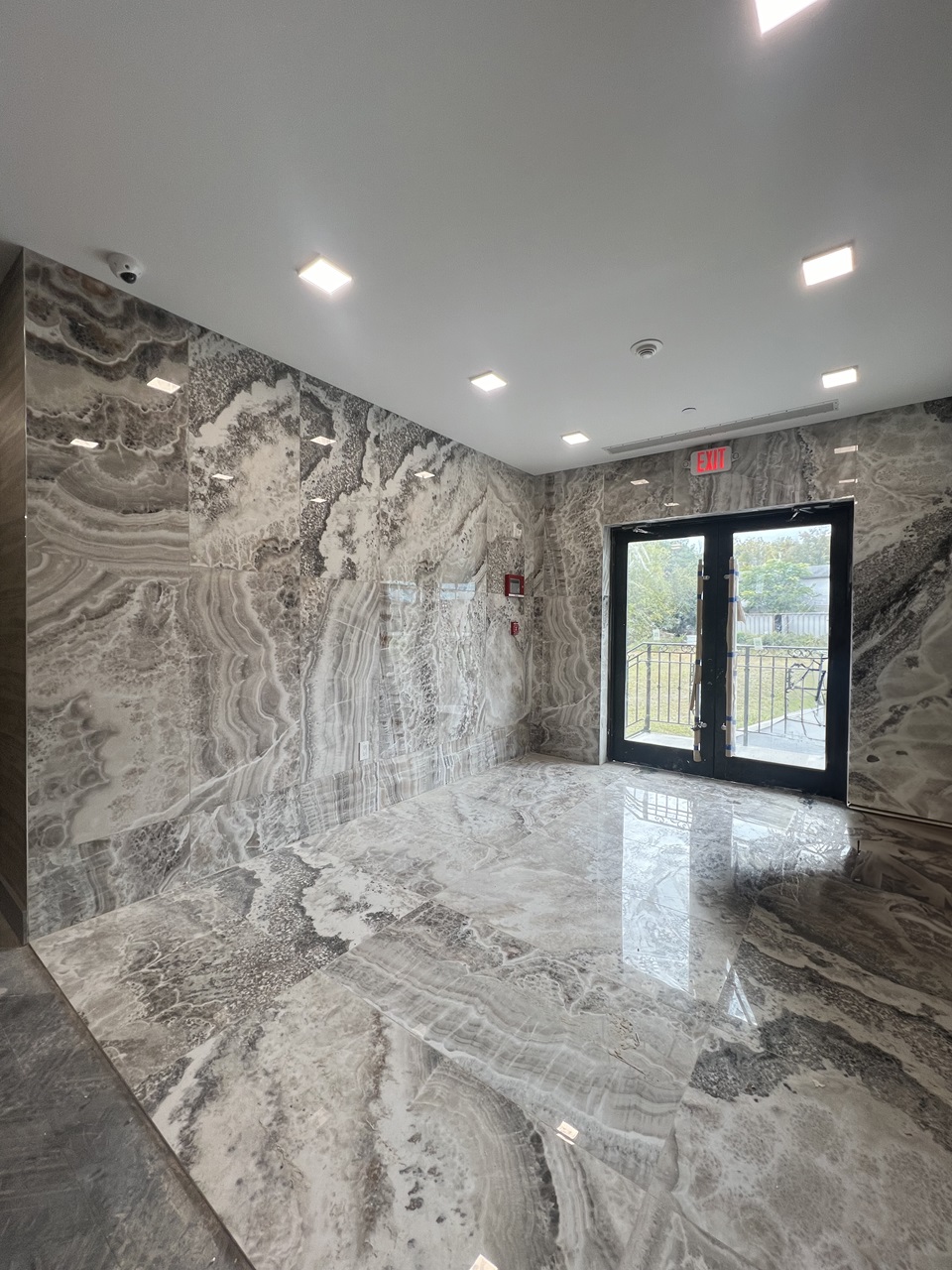 enclosures and concrete block exterior walls.