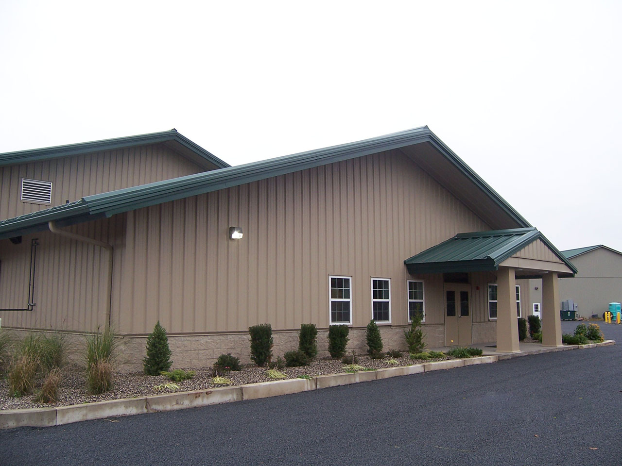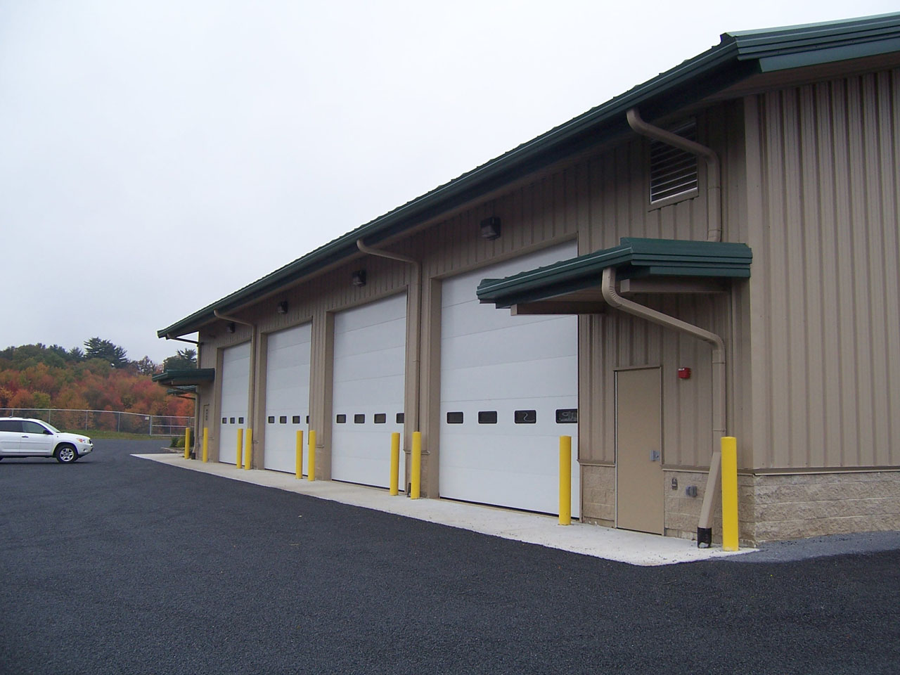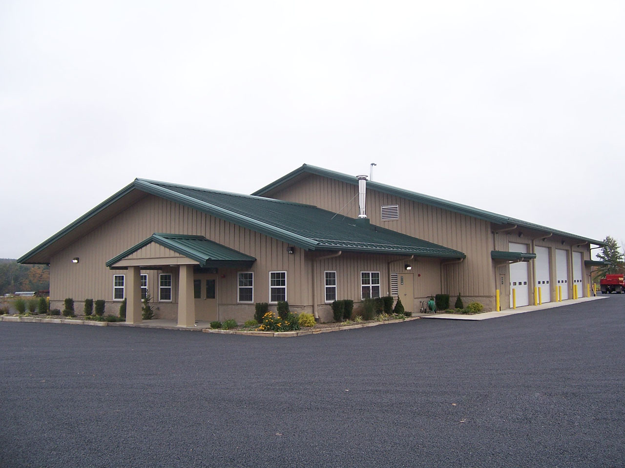 DTM Development, Ltd. was awarded the construction contract for this new Highway Department Building in Crawford, New York, which consisted of a one story, 14,000 square foot, pre-engineered steel structure with metal wall panels, split faced block exterior walls and a standing seam metal roof. The offices, bathrooms with a locker area, parts room, and kitchen area are separated from service garage with a 2 hour rated, concrete block barrier wall. The mechanical systems include a radiant floor heating system and a ducted, cool air overhead system. The garage has a pitched concrete slab which leads to an interior trench drain and an oil-water separator. The office area has sloped interior concrete slabs that ramp to several areas for ADA accessibility. Site development included underground site structures and piping for storm-water management.